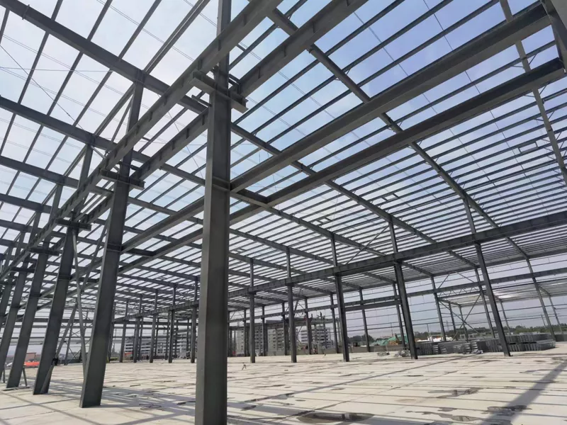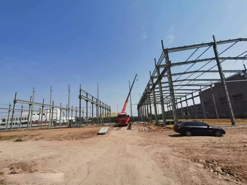 प्रामुख्याने स्टीलचे स्तंभ, स्टील बीम, स्टील ब्रेसेस इत्यादी बनलेले, जे वेल्डिंग, बोल्ट कनेक्शन इ. च्या माध्यमातून फ्रेम स्ट्रक्चरमध्ये एकत्र केले जातात.