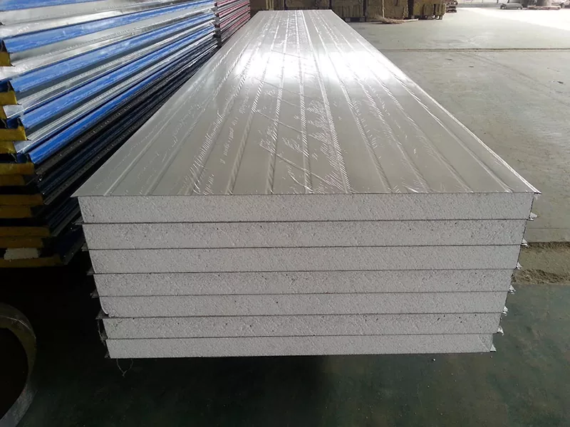 EPS सँडविच पॅनेलमध्ये सामान्यत: दोन बाह्य स्तर असतात, बहुतेकदा स्टील किंवा ॲल्युमिनियमचे बनलेले असते, जे EPS कोरला सँडविच करतात. EPS कोर अपवादात्मक इन्सुलेशन गुणधर्म प्रदान करते, पॅनेलद्वारे उष्णता हस्तांतरण कमी करते, तर धातूचे थर ताकद आणि टिकाऊपणा देतात.