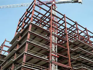 ● स्टील बीम आणि स्तंभ: हे इमारतीचे प्राथमिक लोड-बेअरिंग घटक तयार करतात.