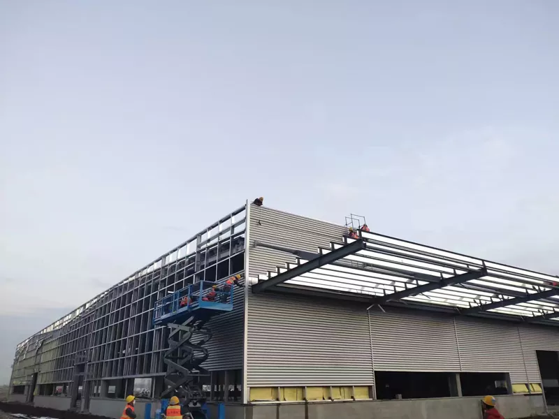 मोठ्या प्रमाणात स्टील स्ट्रक्चर सँडविच पॅनेल वॉल सिस्टम एक कार्यक्षम आणि समाकलित संलग्नक समाधान आहे. ही प्रणाली आत आणि बाहेरील धातूच्या पॅनेल्सच्या दोन थरांनी बनलेली आहे, ज्यामध्ये दरम्यान एक इन्सुलेटिंग कोर सामग्री आहे, सतत रोल-फॉर्मिंग प्रक्रियेद्वारे तयार केली जाते. हे एक वॉल युनिट तयार करते जे सामर्थ्य, इन्सुलेशन आणि सजावटीच्या कार्ये एकत्र करते. केवळ 15-25 किलो/मीटरच्या स्वत: च्या वजनासह, हे मुख्य संरचनेवरील भार लक्षणीय प्रमाणात कमी करते, जे मोठ्या प्रमाणात इमारतींच्या कठोर हलके आवश्यकतेसाठी विशेषतः योग्य बनते. ही भिंत प्रणाली अत्यंत उच्च स्थापना कार्यक्षमता आणि सानुकूलित पृष्ठभागाचे रंग आणि पोत देते, ज्यामुळे मोठ्या व्यावसायिक कॉम्प्लेक्समध्ये आधुनिक आणि सोप्या दर्शनी भागाची निर्मिती होऊ शकते. याव्यतिरिक्त, त्याच्या थर्मल ब्रिज व्यत्यय डिझाइनमुळे उर्जेची कार्यक्षमता वाढविणे, इमारतीचे एकूण उष्णता हस्तांतरण गुणांक कमी होते.