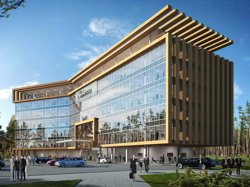 • स्टीलच्या संरचनेसह आधुनिक ऑफिस ब्लॉक्सस्टीलच्या संरचनेसह आधुनिक ऑफिस ब्लॉक्स