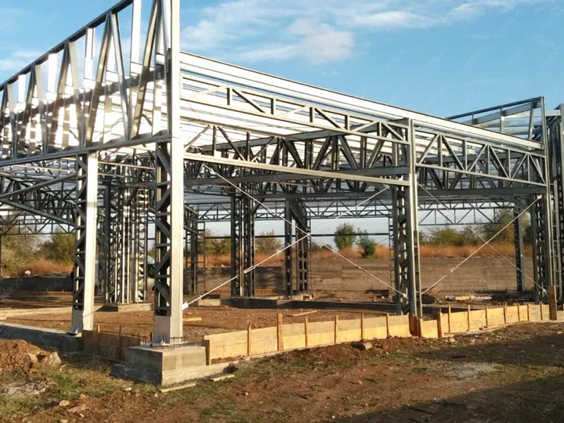 2. पाया तयार करणे भूगर्भीय सर्वेक्षण जमिनीच्या स्थितीचे मूल्यांकन करण्यासाठी आणि योग्य पाया प्रकार निश्चित करण्यासाठी आयोजित केले जातात, जसे की काँक्रीट स्लॅब किंवा ढीग. स्टील स्ट्रक्चरच्या वजन आणि भारांना समर्थन देण्यासाठी डिझाइन वैशिष्ट्यांनुसार पाया तयार केला जातो.