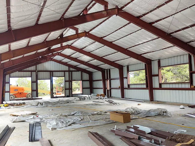 छप्पर आणि बाह्य क्लेडिंग:एकदा स्टीलची फ्रेम पूर्ण झाल्यानंतर, छप्पर प्रणाली स्थापित केली जाते, सामान्यत: इन्सुलेटेड मेटल पॅनेल किंवा सिंगल-प्लाय झिल्ली सामग्री असते. बाह्य भिंती, डिझाइनमध्ये समाविष्ट असल्यास, मेटल पॅनेल किंवा वीट सारख्या सामग्रीचा वापर करून देखील स्थापित केल्या आहेत.