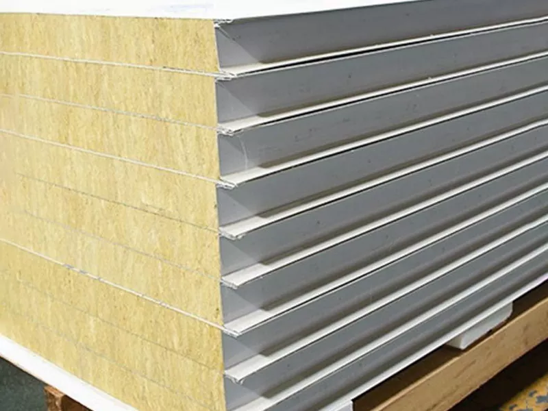 रॉकवूल सँडविच पॅनेल हे एक संमिश्र बांधकाम साहित्य आहे ज्यामध्ये सामान्यत: रॉकवूल इन्सुलेशनचा एक भाग सँडविचिंग धातूच्या शीटिंगचे दोन स्तर असतात. रॉकवूल ही खनिज फायबर इन्सुलेशन सामग्री आहे जी बेसाल्ट किंवा डायबेस खडकांपासून बनविली जाते. हे उत्कृष्ट थर्मल इन्सुलेशन आणि आग प्रतिरोध प्रदान करते.