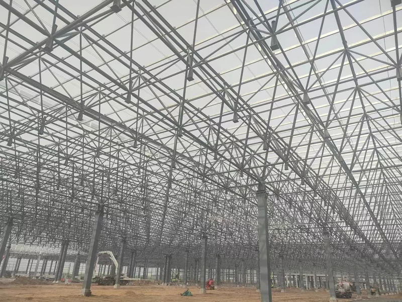 सामर्थ्य आणि कडकपणा: स्टीलच्या जागेच्या फ्रेम्समध्ये समान सामर्थ्य आणि कडकपणा आहे आणि गुरुत्वाकर्षण, वारा भार आणि भूकंप शक्ती यासारख्या बाह्य शक्तींचा प्रभावीपणे प्रतिकार करू शकतो. हे मोठ्या जागेच्या जागेचे समर्थन करण्यासाठी आदर्श बनवते.