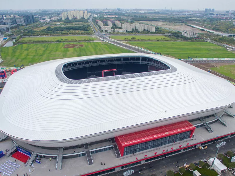 3. मुख्य रचना मोठ्या-स्पॅनियल ट्रस किंवा ग्रिड सिस्टमचा अवलंब करते, स्तंभ-मुक्त मोकळी जागा तयार करते, सर्व प्रेक्षकांसाठी अनियंत्रित दृश्ये आणि सर्व-हवामान वापर आवश्यकता पूर्ण करण्यासाठी सुपर-मोठ्या छप्पर कव्हर करण्याची क्षमता सुनिश्चित करते.
